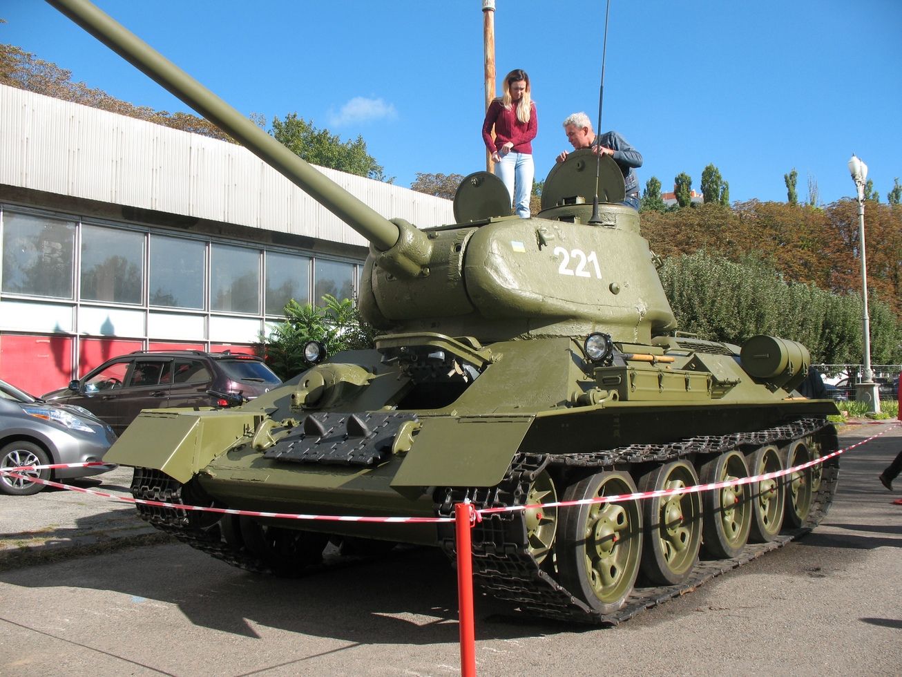Вниманию зрителей предлагаются сразу две легендарные «тридцатчетверки» - лучший танк Второй Мировой войны в модификации Т-34-75. Обе машины в рабочем состоянии, одну из них, прекрасно отреставрированную, механик-водитель периодически заводит, прогревая дизель, чем невероятно радует публику.