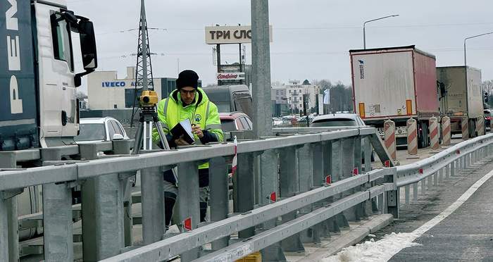 чотири вантажівки вагою по 40 тонн створювали навантаження на різних прогонах шляхопроводу. Спеціальні датчики фіксували реакцію конструкції.