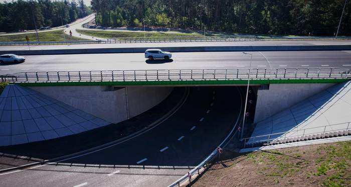 Компанія в стислі терміни завершила спорудження опорних стінок тунелю та влаштувала монолітну плиту перекриття з правої частини траси. Була застосована технологія постнапруження залізобетону. Для цього в опалубці влаштовані канали для високоміцних сталевих канатів: після набору бетоном міцності канати натягуються та заповнюються спеціальним інʼєкційним розчином – в результаті, напруження передається на конструкцію, додаючи плиті міцності та довговічності.