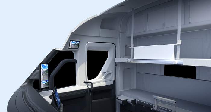 Салон Hybot H49 виглядає як суміш футуристичної кабіни та компактної квартири. Тут все є для комфортної роботи та відпочинку.