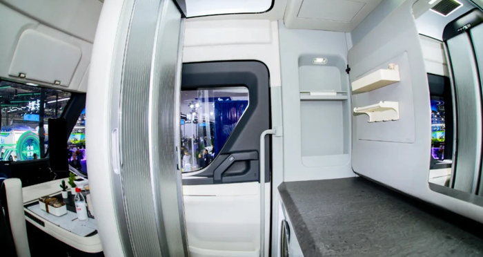 Вхід до кабіни тут через двері водія. Рішення цікаве, але практично повторює схему американської "близнючки" на акумуляторах Tesla Semi та китайської електричної Windrose V400.