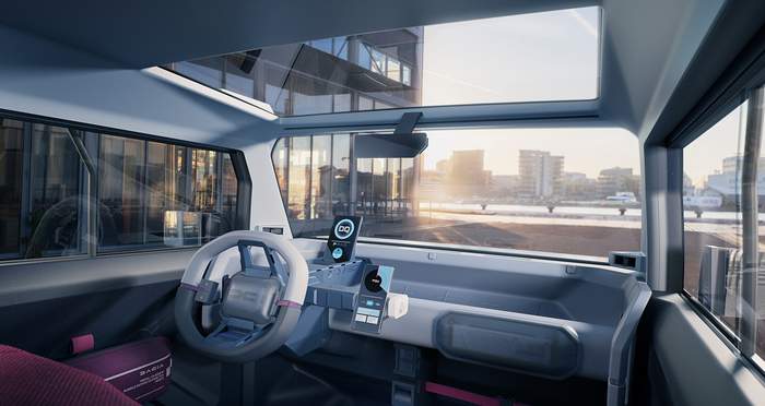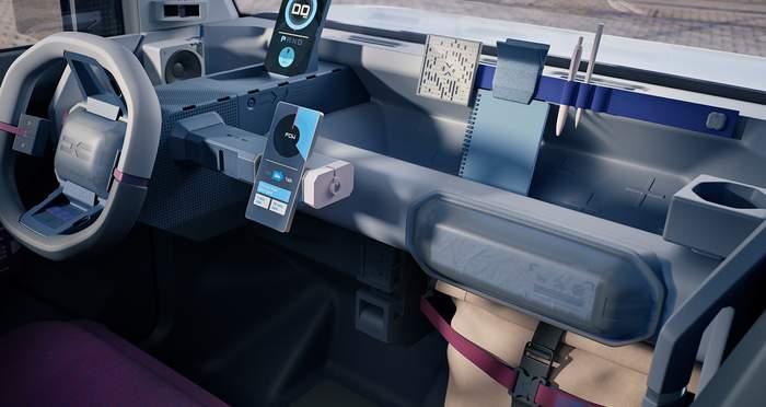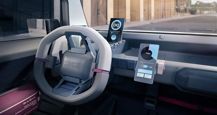 Усередині — максимум функціональності. Тут використана система YouClip, яка дозволяє фіксувати аксесуари на 11 точках (підсклянники, ліхтарі, тримачі тощо). Подібне рішення вже є в Duster, що продається в Україні. Замість великого екрану — смартфон водія, який виконує роль ключа, навігатора і мультимедіа через Bluetooth-динамік.