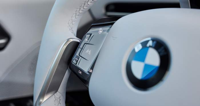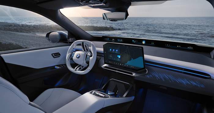 Для фанатів BMW це вражаючий відхід як від поточних компонувань бренду, так і від більш орієнтованих на водія приладових панелей. Елементи керування тризонним клімат-контролем інтегровані в сенсорний дисплей, проте фізичні кнопки присутні на кермі. Додаткові функції включають аудіосистему Harman Kardon з 13 динаміками та новими звуковими ефектами й панорамний дах.