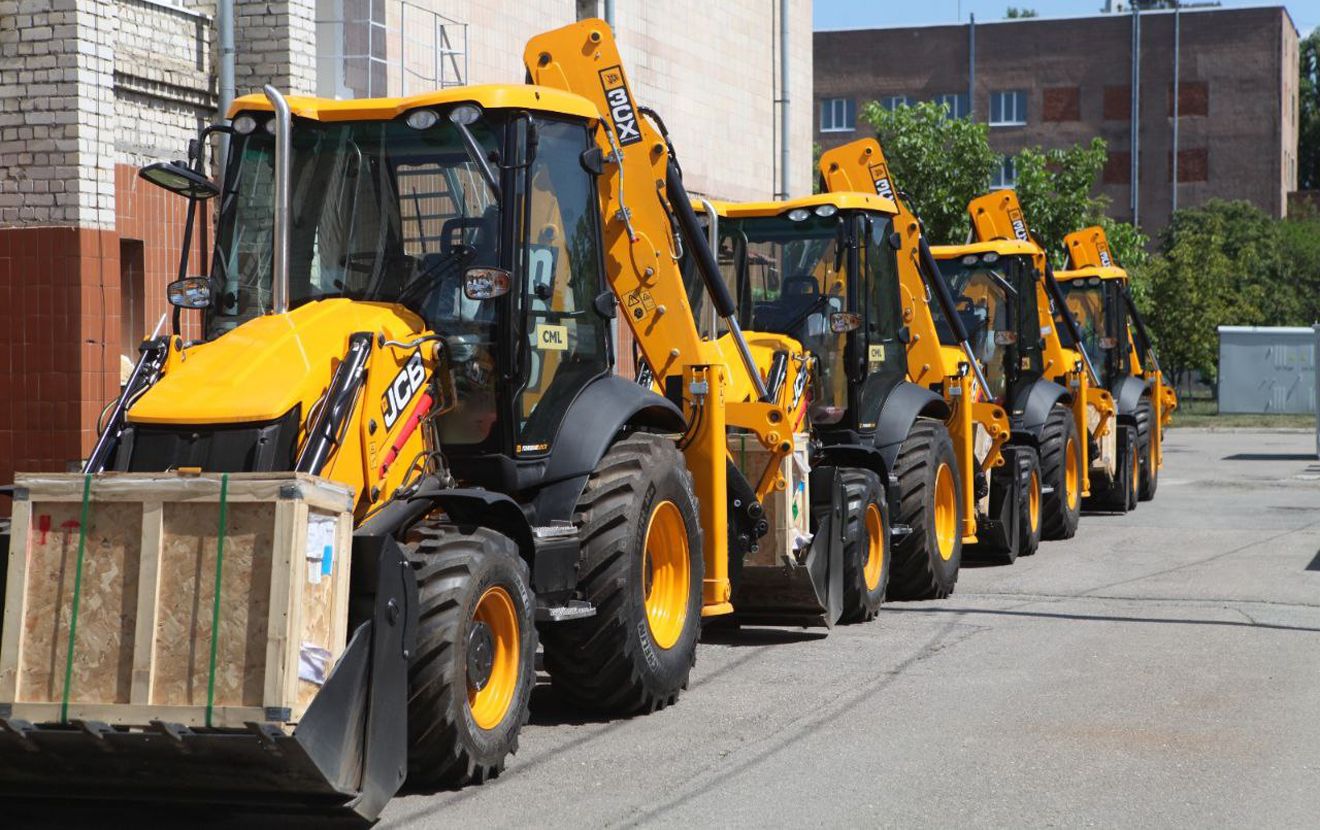 Екскаватори навантажувачі JCB 3CX з додатковим робочим інструментарієм в ящиках