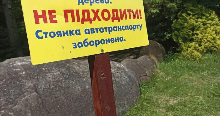 На біду власника та на щастя відсутніх в цей момент в машині дітей, водії поставили автобус там, де адміністрація заповідника це робити не рекомендувала. Про те навіть попереджає встановлена табличка, що стоянка та прогулянка під деревом заборонені.
