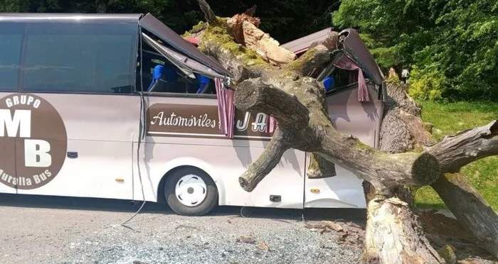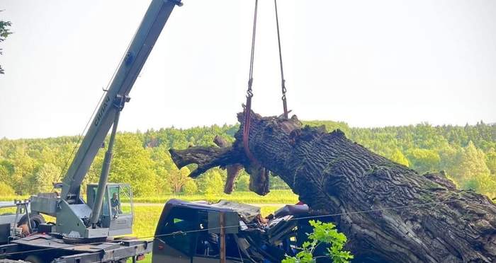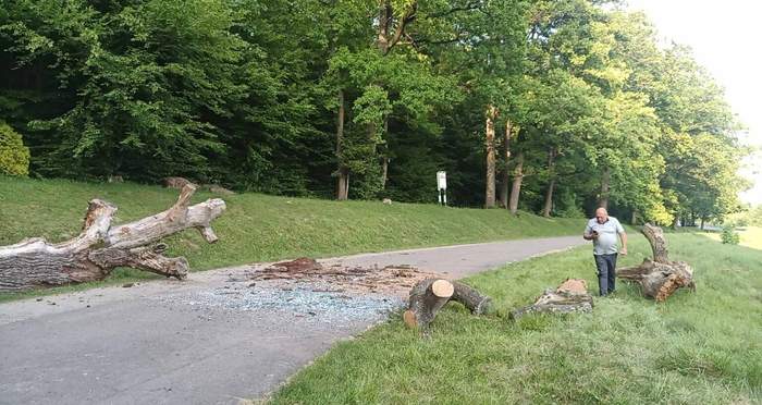 Стовбур дуба висох, але й тієї ваги у падінні дерева було автобусу вдосталь - брухт гарантований