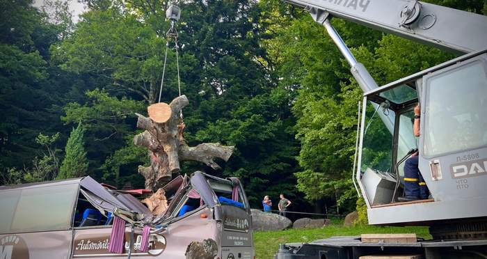 Задня частина автобуса практично розтрощена від даху до сидінь. Товсті сучкуваті обрізи від гілок простромили автобус до підлоги. Для визволення пасажирської машини довелося викликати рятувальників, залучати 25-тонний автокран шасі КрАЗ, виготовлений на Дрогобицькому заводі автокранів.