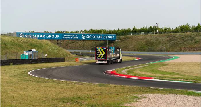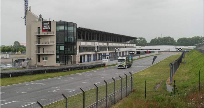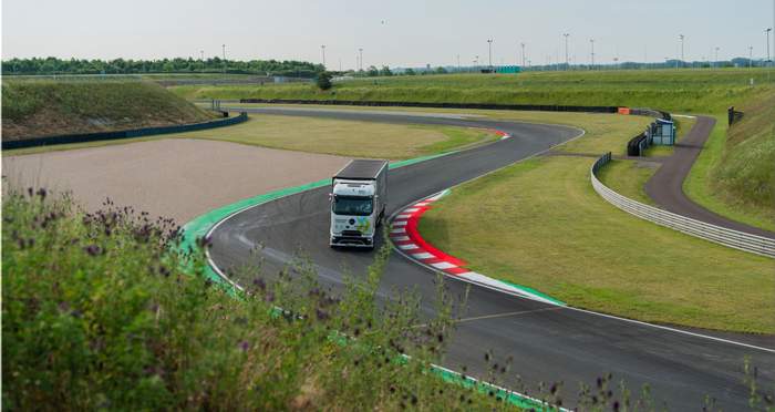 Спортивний трек для Mercedes eActros 600 був своєрідним паркетом – широкий та врівень з узбіччям і жодних перепон на всій відстані. Фото: Daimler Truck