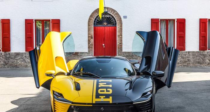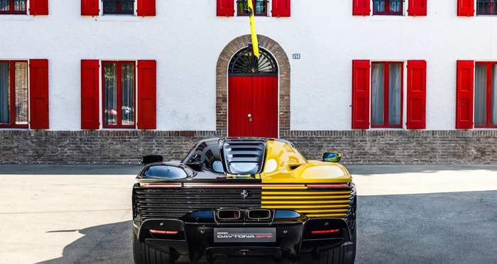 Аукціонний Ferrari Daytona SP3 має унікальне двоколірне фарбування: кузов візуально поділений на ліву і праву половини, прикрашений в чорно-глянцевий колір і жовтий колір Giallo Modena відповідно, а між цими половинами на поверхню кузова нанесено надпис Ferrari — аналогів таких ліврей в історії компанії немає.