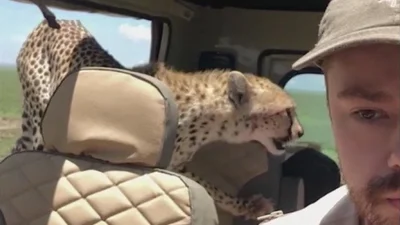 Пригода трапилась у національному заповіднику Серенгеті у Танзанії. “Це відео з мого останнього Safari”, – написано у коментарі до посту у Instagram. “Ми зіткнулися з кількома гепардами, які відпочивали під полуденним сонцем. Ми зупинялися на обід поруч, спостерігаючи за ними. Через деякий час вони встали і почали рухатися. Вони наблизились до транспортного засобу, дві найменші тварини “вломилися” у наш автомобіль. Гепарди використовують підвищення для огляду навколишнього простору. Очевидно, наш автомобіль являв собою підходящу платформу для розвідки. Перш ніж ми встигли щось зрозуміти, один гепард стрибнув на капот машини, а інший по запасному колесу на дверцятах багажника проліз у заднє вікно.