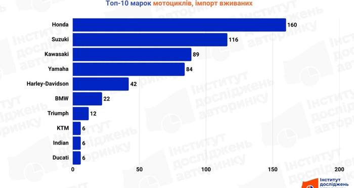 У сегменті «пригнаних» — поки набір давно відомих «старожилів» ринку. Найбільше ввозять класичних «японців» — Honda, Yamaha, Suzuki та Kawasaki залишаються незмінною четвіркою лідерів, що обирають як новачки, так і досвідчені райдери. Є певна частка і мотоциклів «з характером»: Harley-Davidson упевнено тримається в середині списку, а Ducati, Indian, KTM і Triumph — нагадують, що для когось мотоцикл це не просто транспорт, а стиль життя. І попри вік, ці машини приїжджають з амбіціями на нове життя на українських дорогах. Нехай навіть у таких невеликих кількостях.