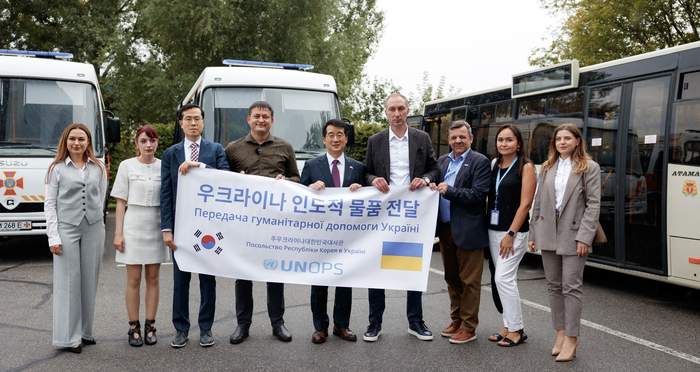 Автобуси надійшли у рамках проєкту "Закупівля товарів для гуманітарної допомоги в Україні", який реалізує ЮНОПС за підтримки Корейського агентства міжнародного співробітництва (KOICA).