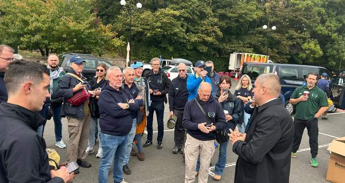 Ось так проводжали караван машин до України в Шотландії. Фото: AUGB Edinburgh