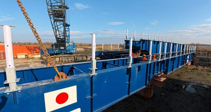 Завдяки новому траншу, що оперативно здійснив уряд Японії, прибули модулі з металевих конструкцій вже готового мосту. Їх передали Україні як гуманітарну допомогу для організації безпечного маршруту логістики та евакуації.