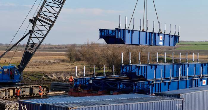 - Довжина прогонової будови тимчасового мосту - 40 метрів.