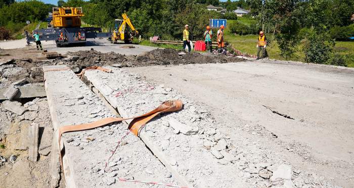 Йде демонтаж зруйнованих конструкцій старого мосту