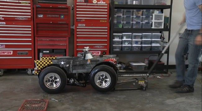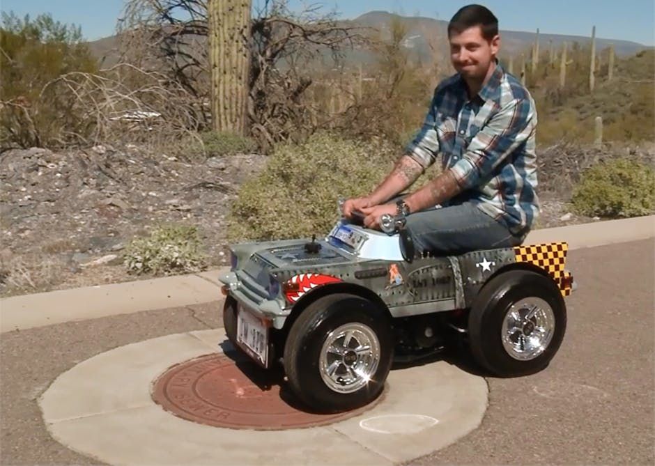 Автомобільчик обладнано одноциліндровим бензиновим двигуном та безступінчатим варіатором від квадроцикла, завдяки яким він здатен розвивати швидкість у 53 км/ч. За словами Остіна, через відсутність підвіски швидкість на автомобілі відчувається, як в 3 рази більша.