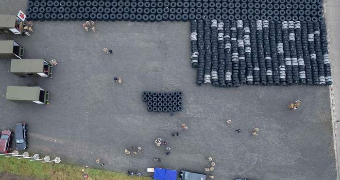 Зазначається, що транш автомобільного спорядження обійшовся в 30 000 000 гривень. Які саме підрозділи отримали шини, не повідомляється, але на окремих світлинах на ФБ-сторінці є розгорнуті вимпели частин з назвами та найменуваннями.