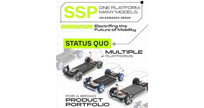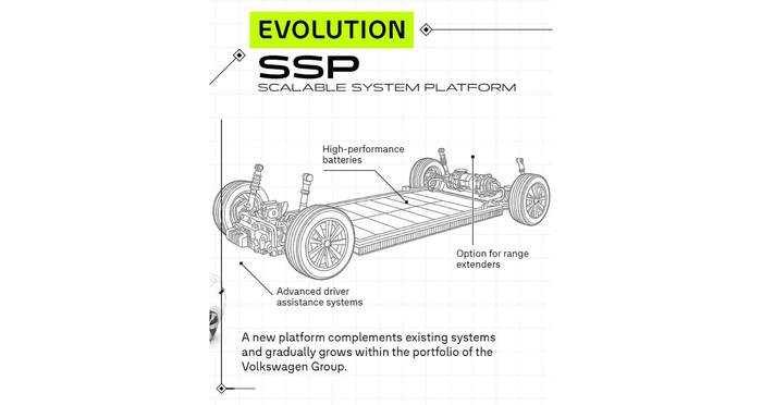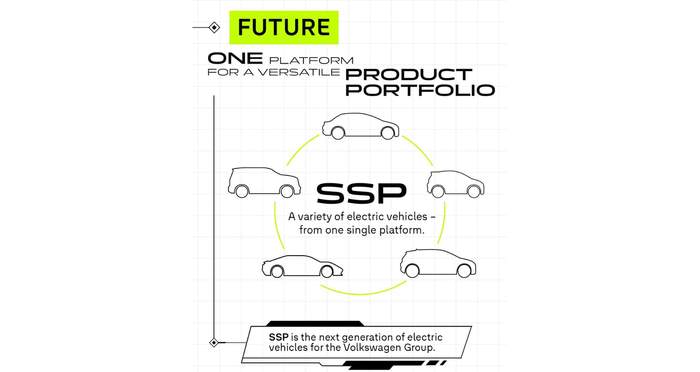 Нова архітектура SSP стане основною для моделей VW й замінить усі існуючі електричні платформи. На тизері зображено п’ять різних типів кузова, що будуть використовувати цю архітектуру: від міського хетчбека до великого позашляховика. Як очікується, випуск автомобілів на базі SSP можуть налагодити вже наступного року.