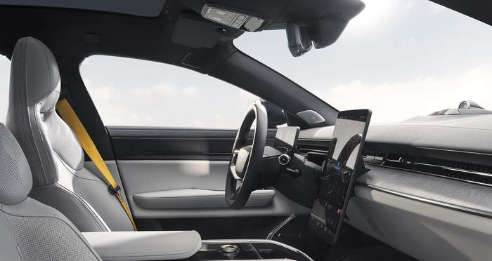 Проте, новинка більш примітна відсутністю заднього скла. Інтер'єр мінімалістичний та високотехнологічний, оскільки власники знайдуть 9-дюймову цифрову панель приладів, 9,5-дюймовий проєкційний дисплей та 14,5-дюймову інформаційно-розважальну систему з портретною орієнтацією. Центральний дисплей працює на базі Android Automotive, спеціально розробленій для Polestar, та має інтеграцію з Google.