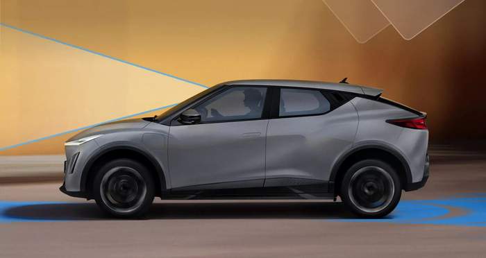 Передок виділяється розділеними LED-фарами й виступаючими крилами. Дверні ручки виконані врівень із кузовом, а задні приховані в стійках. У базовій комплектації — 18-дюймові диски та два кольори: Ice Blue і Caviar Grey.