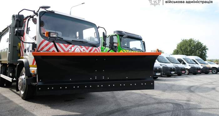 В нинішній партії техніки видно екскаватор-навантажувач Case 570 SV, комбінована дорожня машина (КДМ) на шасі JAC, фургони Peugeot Boxer, сміттєвоз на ходовій IVECO Eurocargo 140-250, самоскид Dayun та іншу техніку.