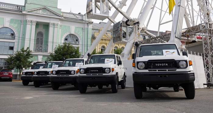Наші захисники неба отримали пікапи Toyota Land Cruiser 79. Ці машини дуже рідкісні в Україні, оскільки не продаються в офіційних дилерських центрах. Їх випускають в Японії та для Австралії, країн Африки і Південної Азії. Передані Нацгвардії машини мають кермо зліва.