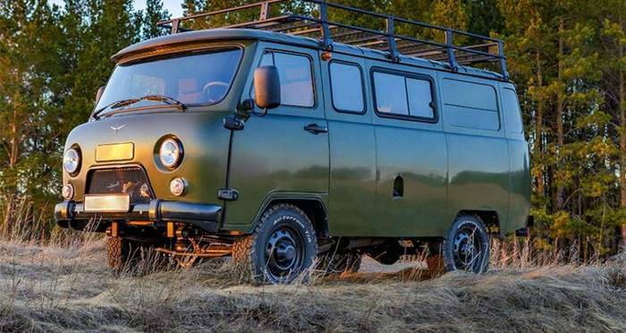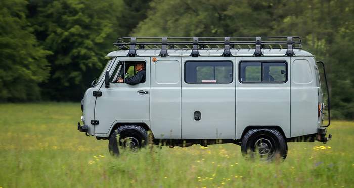 Микроавтобус на шасси командирского УАЗа совмещает практичность фургона и мощь армейской техники. Высокая проходимость добавляется "по умолчанию"