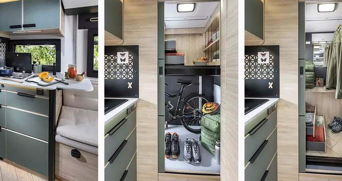 Расширенная версия X250 также имеет модульную концепцию заднего багажного отсека (гаража) для хранения велосипедов, лодки и другого имущества для содержательного и комфортного отдыха.