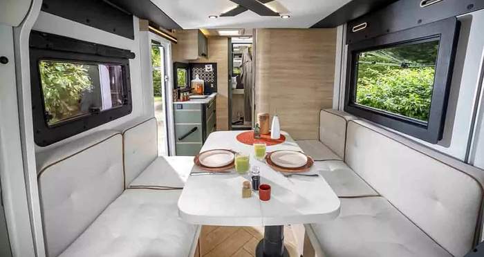 Двухприводный дом на колесах Challenger ElectriX доступен в двух габаритных версиях. Вариант X150 имеет длину 5,99 метра, а X250 немного длиннее – 6,36 метра. Стандартно оба варианта предлагают оборудованную кухню со столовой, которую легко можно превратить в спальню, и ванную комнату с душем.