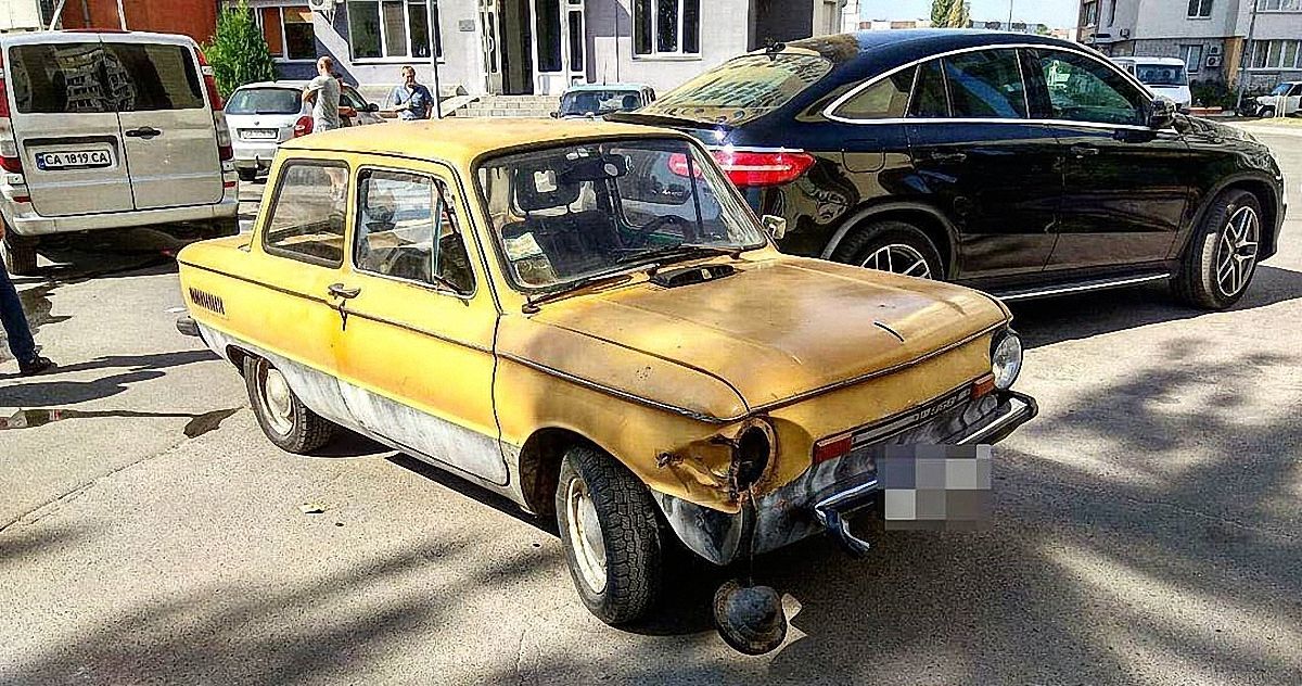 3 сентября в Черкассах состоялось каноничное ДТП из бородатых анекдотов – в дорогой джип Мерседес въехал старенький Запорожец.