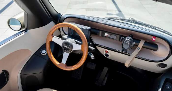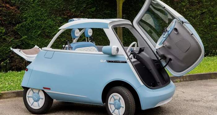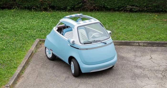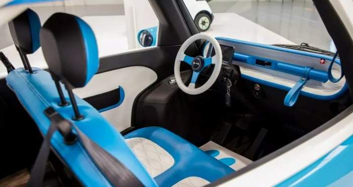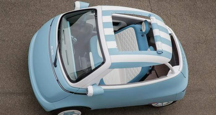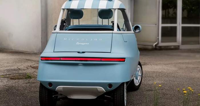 Microlino Spiaggina с открытым верхом пойдет ограниченным тиражом. Он без боковых и задних окон, с брезентовой крышей. В таком виде он напоминает пляжного круизера. Мини-кар доступен в эксклюзивных цветах Portofino Blue и Sardinia Sage, с веганскими кожаными сиденьями в стиле яхт и аккумулятором емкостью 10,5 кВт-ч, что обеспечивает запас хода до 177 км.
