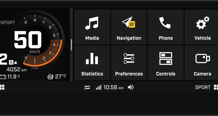 Электрический Can-Am имеет мощную светодиодную фронтальную оптику и современный 5-дюймовый дисплей на руле. Фото: BRP Can-Am