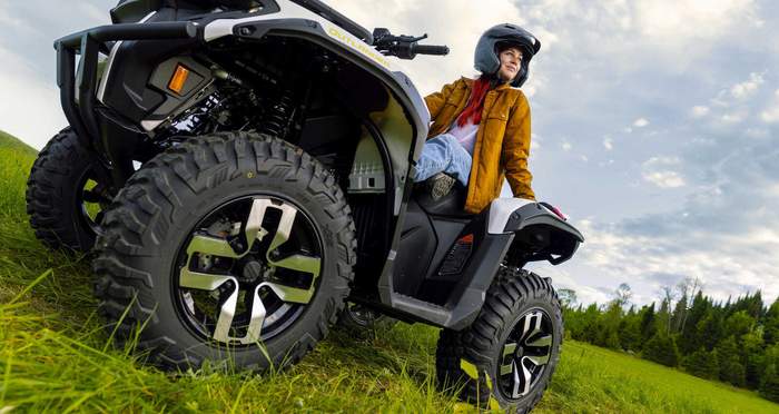 Квадроцикл оснащен собственным модульным приводным пакетом Rotax E-Power, что уже прошел хорошее испытание временем в электрических мотоциклах и снегоходах BRP. Электрический двигатель выдает 47 л.с. и 72 Нм крутящего момента уже на старте.