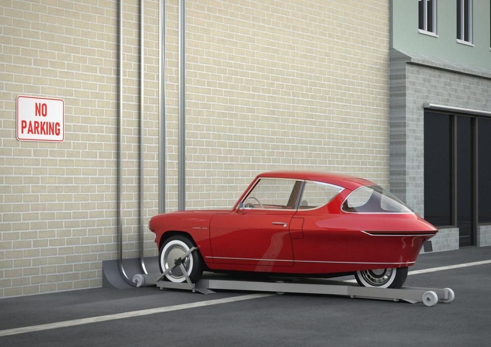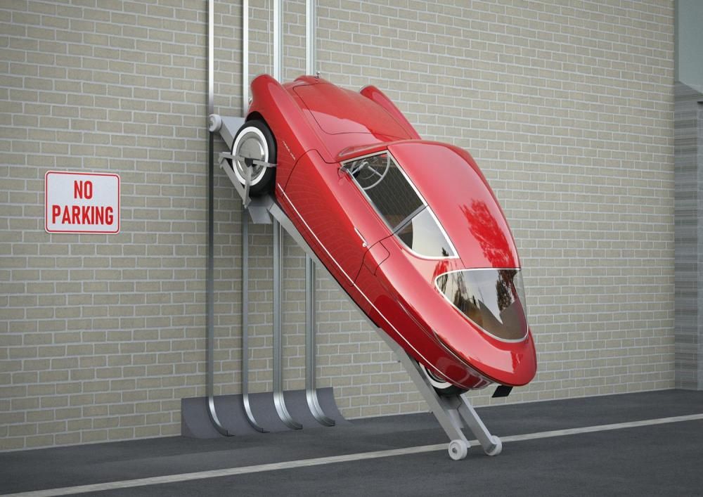 Самая необычная опция Nobe 100 – вертикальная парковка на стене. Для этого ему понадобится специальное приспособление, похожее не рельсы или стремянку с платформой. Автомобиль выезжает на стену двумя передними колесами, а третье остается на земле.