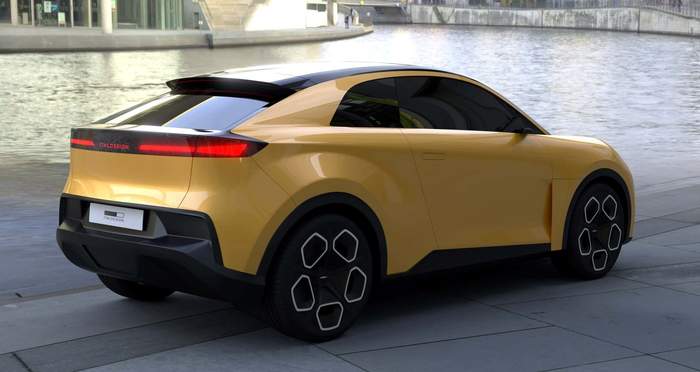 Сбоку кроссовер имеет камеры вместо зеркал на стойках, двухцветные колесные диски и массивные арки. Дизайн задней части поддерживает драматический вид благодаря круто наклоненному заднему стеклу, узким светодиодным задним фонарям и затемненному бамперу.