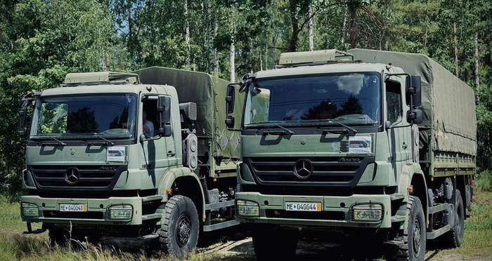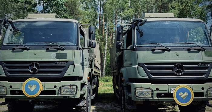 - 4 полноприводных грузовика Mercedes-Benz военного назначения – для работы в условиях бездорожья и на труднодоступных направлениях;
