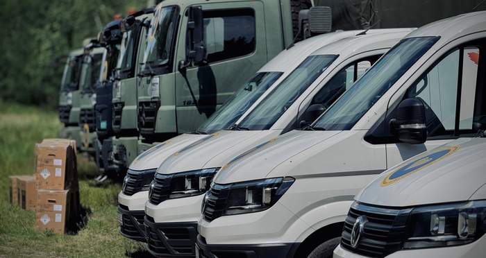 - 4 полноприводных микроавтобуса Volkswagen – для мобильных групп, перевозки личного состава и оперативной логистики.