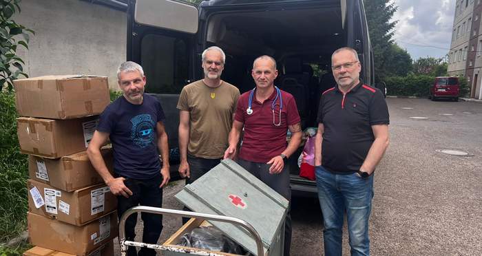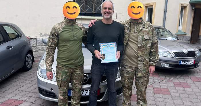 Небольшой караван из пяти машин пригнали волонтеры благотворительной организации Gaisma tumsā (Свет в темноте) из города Вентспилс. Перед тем как военным передать автомобили, их салоны пришлось освободить от собранной и закупленной помощи.