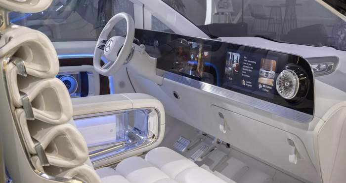 Внутри VLE унаследует много дизайнерских решений от концепта Vision V и серийного EQS, включая вертикальный гиперэкран MBUX от стойки до стойки, который работает под управлением последней версии операционной системы Mercedes-Benz (MB.OS). Обивка салона будет выполнена из экологичных материалов, а расположение сидений будет отличаться в зависимости от версии: VLE рассчитан на большие группы людей благодаря гибкому трехрядному расположению сидений, тогда как VLS будет иметь отдельные капитанские кресла и лаунж-зону.