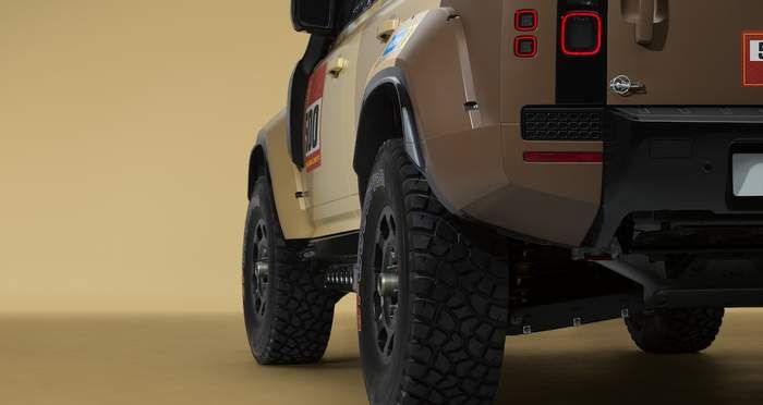 Также авто имеет увеличенную колею (на 60 мм шире), более высокий клиренс и измененную геометрию передней части для лучших углов въезда и съезда. На крыше установлены мощные светодиодные модули для ночных этапов.
