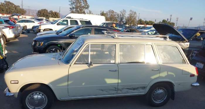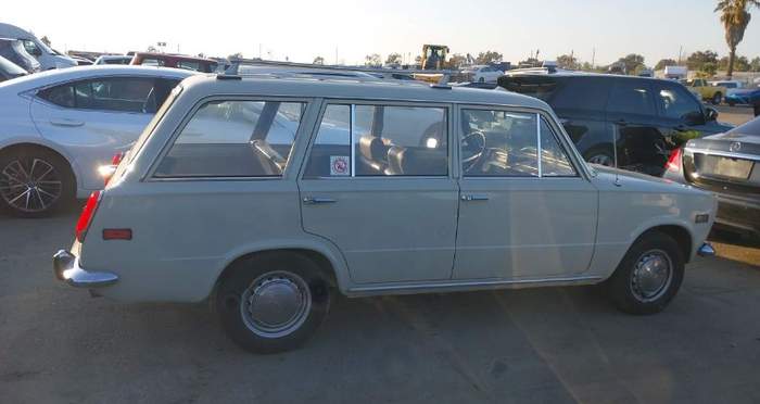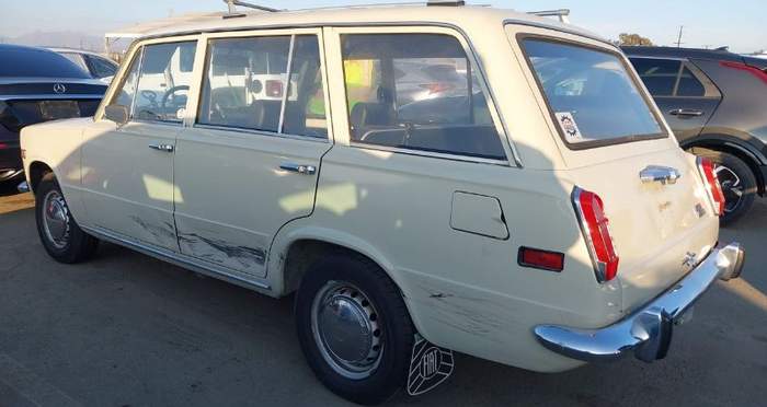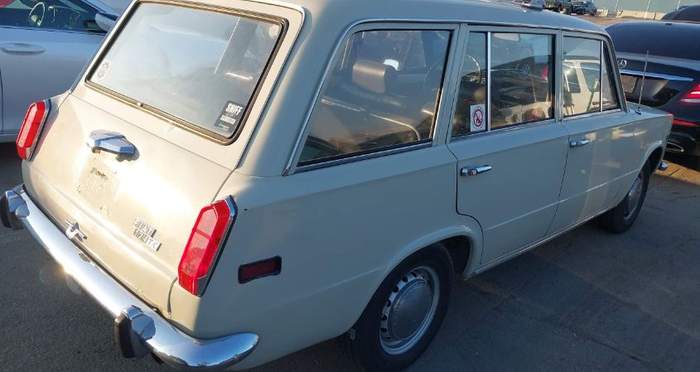 Fiat 124 в кузове универсал, выставленный на торги в США – практически точная копия ВАЗ-2102. Немного отличаются лишь детали – решетка радиатора, бамперы, поворотники и ручки дверей. Однако сомнений в том, что продается именно Fiat, а не “Жигули”, никаких: об этом свидетельствует логотип, табличка с номером кузова и названием производителя.