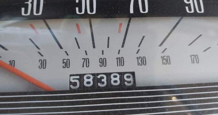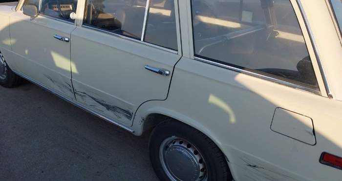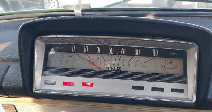 Из повреждений видно только вмятину на двух дверях с левой стороны. На одометре – 58389 (миль или километров – неизвестно). Автомобиль имеет дополнительный багажник на крыше, магнитолу, три ключа (очень похожи на “Жигулевские”) и достаточно сохраненный черный дерматиновый салон.