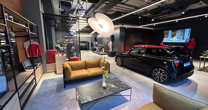 AWT Studio расположен в одном из самых современных столичных офисно-жилых комплексов UNIT.City. Инновационное пространство состоит из уютной террасы и салона, в котором выделены зоны брендов BMW, BMW Motorrad и MINI.