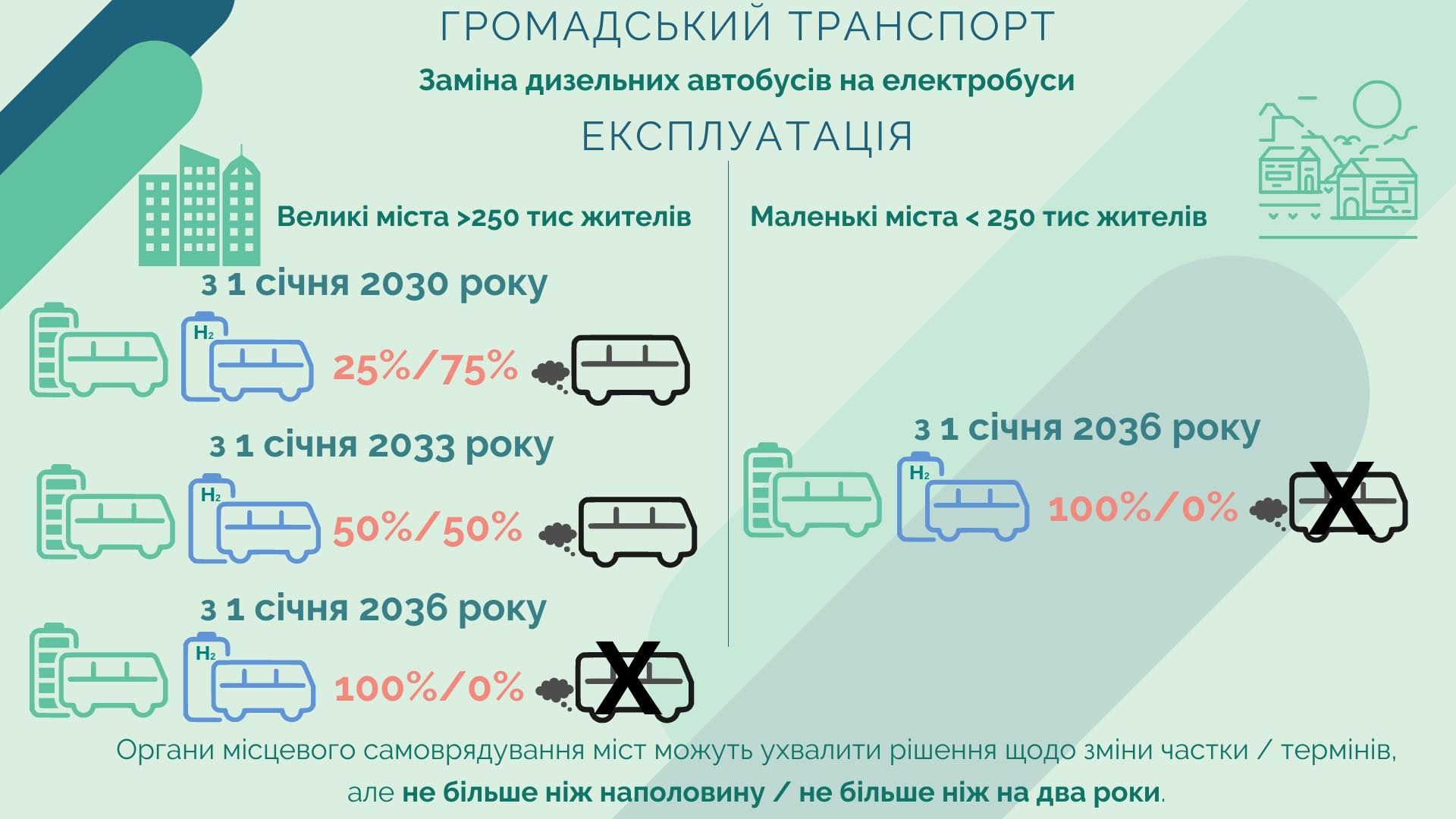 Этот «зеленый» переход намечен до 2036 года, когда предлагается полностью запретить использование автобусов с ДВС в украинских городах.