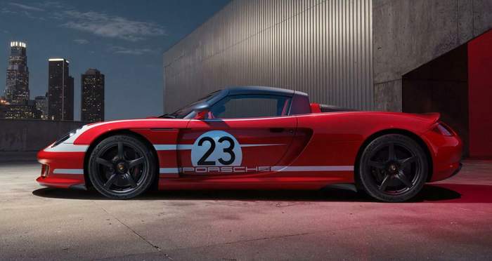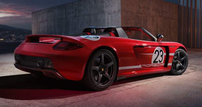 Кузов Carrera GT теперь окрашен в оттенок Indian Red с белыми полосами и номером 23 - ливрея выполнена вручную. Визуальный образ дополняют матово-черные карбоновые элементы: крышка двигателя, секции крыши, зеркала, стойки и диффузор. Оригинальные диски остались, но получили черное покрытие, которое подчеркивает гоночный стиль.
