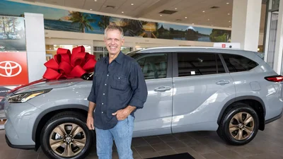 В конце января Миллера пригласили в сервисный центр, в котором он обслуживал Highlander, чтобы он поделился своей историей владения. Там его ждал сюрприз: представительство Toyota подарило ему новый автомобиль той же модели – гибридный Highlander 2023 года в спецверсии Bronze Edition.