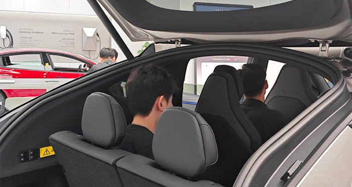 Кроме того, невысокие пассажиры смогут вытянуть одну ногу в центральный проход. Журналисты отметили, что форма сидений напоминает, скорее, маленькие скамейки. Бедра при такой посадке почти не имеют опоры, что делает поездки на длинные дистанции почти невозможными. Из-за того что Model YL сохранил дизайн купе-внедорожника, пространство над головой было очень ограничено: расстояние между головой и задним стеклом для человека ростом 170 см лишь чуть больше кулака.