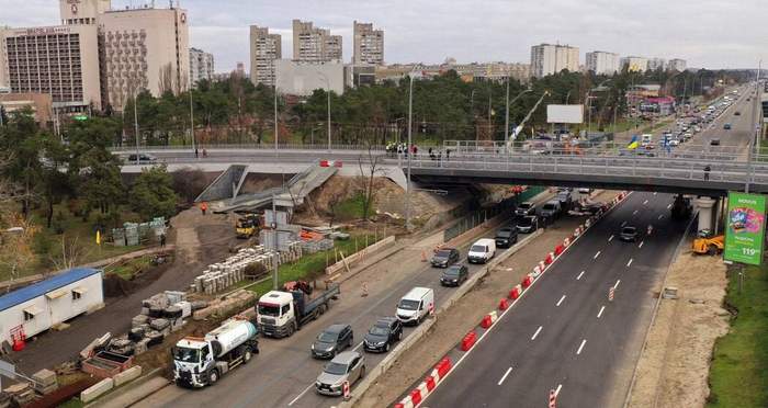 Одним из самых сложных и важных этапов реконструкции стал демонтаж старой опоры, расположенной непосредственно под путепроводом на Броварском проспекте. Ранее она частично сужала проезжую часть и создавала опасные места для маневров. После реконструкции опору вынесли за пределы дороги, что увеличило пропускную способность проспекта и уменьшило риск аварий.