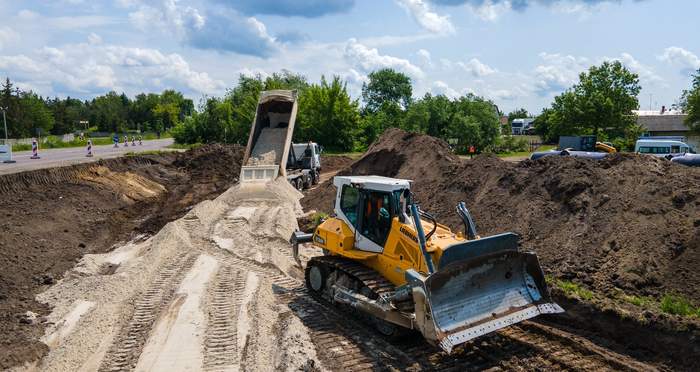 Начались работы на участках расширения проезжей части. Там с помощью бульдозеров и грейдеров снимают растительный слой почвы, который будет сохранен для дальнейшего обустройства прилегающей к дороге территории.